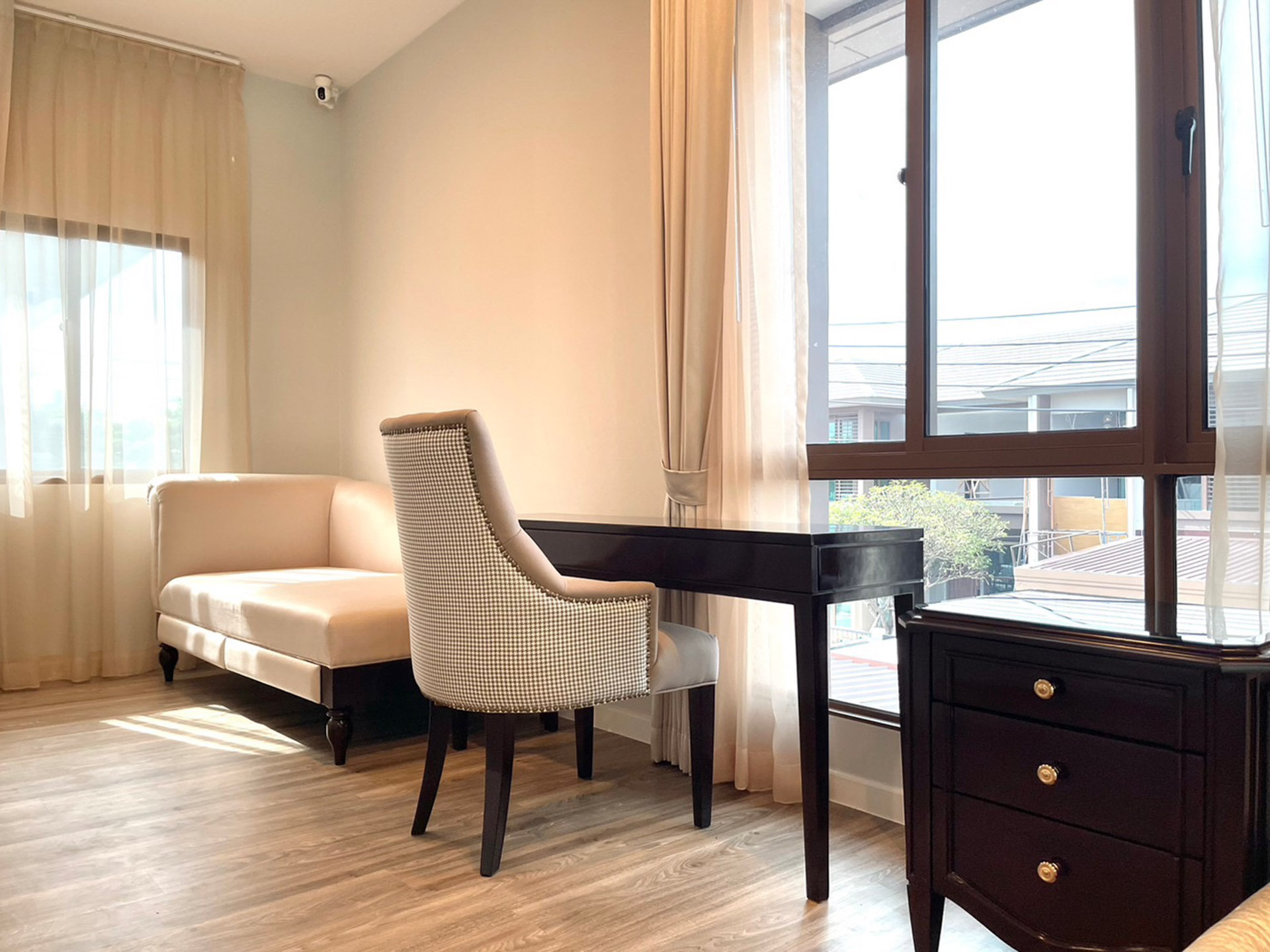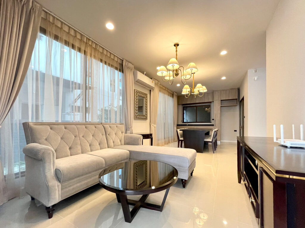 This luxury 2-storey detached house at Burasiri Krungthep Kreetha by Sansiri offers refined living in a private, low-density enclave with only five homes in the lane.